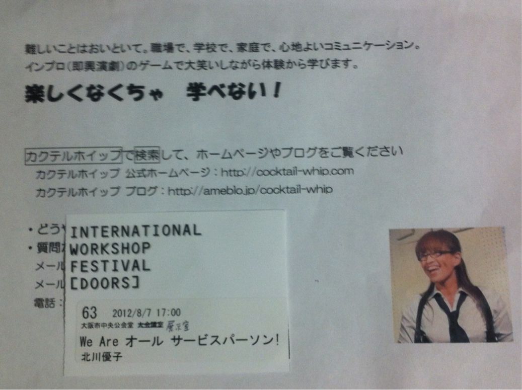 始まると、「インプロ」とか知らない言葉が飛び交ってたり、参加者の方々も自分の業界とは違い(あたりまえ)、少し緊張・・・(ノェ・、`)モキュモキュ モキュキュ♪